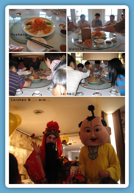 As usual, we had reunion dinner @ MingJiang, GoodwoodPark Hotel. What more can I ask when the food was simply thumbs up? The last picture was my fav. I was trying to capture the "Caishen" on my camera but failed because they was moving really fast. So when the "Caishen" notice that I was trying to take a photo of them, he asked the 大头娃娃 to stopped and posed for me. Nice! :)