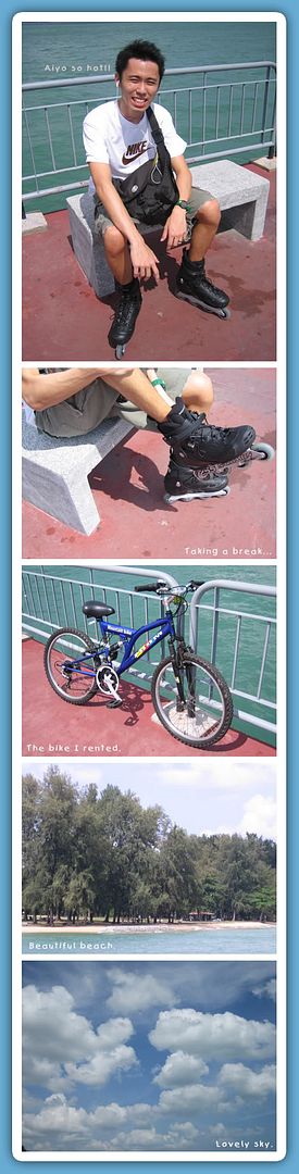 Met up with baby at 2.30pm near his place and off to ECP for blading and cycling... Since I don't want to waste baby's time on teaching me, I rather cycle. :P