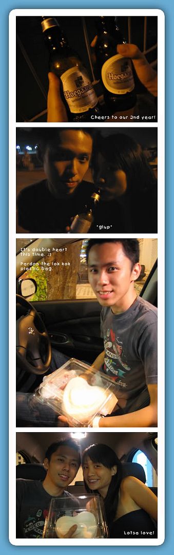 We bought 2 bottles of Hoegaarden from the 7-11 and settle down at the jetty for a heart to heart talk. Sweet!
